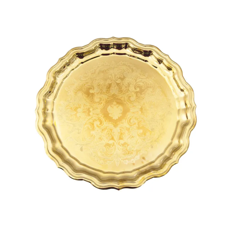 Поднос круглый с фигурной вырубкой и гравированным рисунком, латунь, Кольчугино
