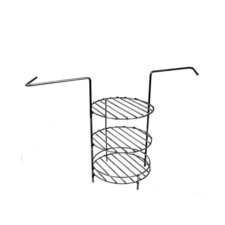 Поверх устанавливаются решетка, на которой разложены продукты. При готовке соки и жиры могут стекать в щепу, а получаемый в результате дым – впитываться в еду, поэтому применяется специальный поддон.