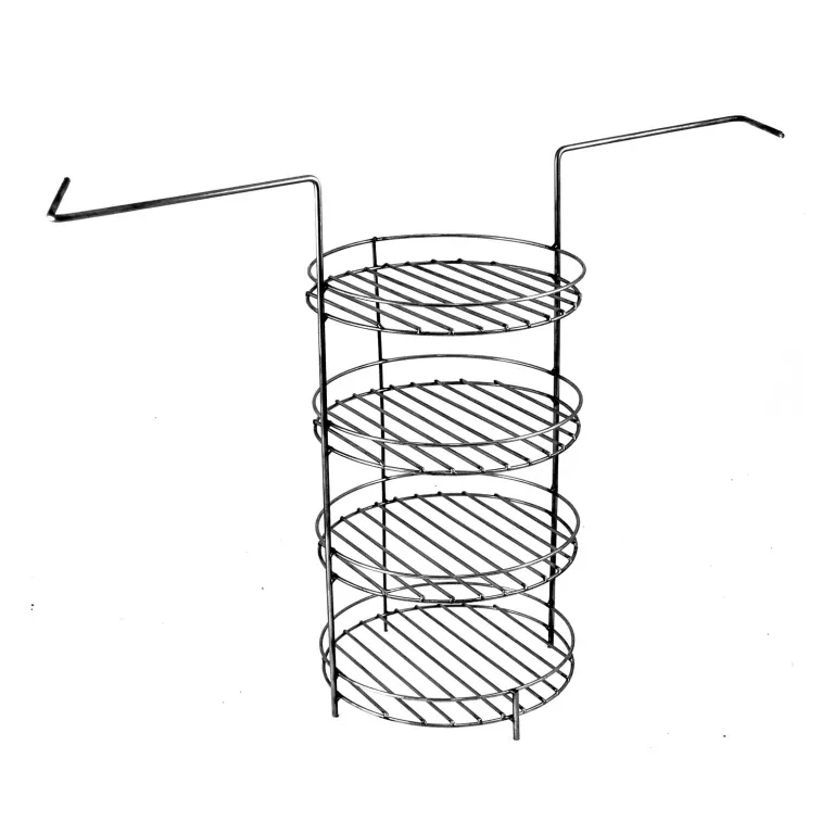 Поверх устанавливаются решетка, на которой разложены продукты. При готовке соки и жиры могут стекать в щепу, а получаемый в результате дым – впитываться в еду, поэтому применяется специальный поддон.