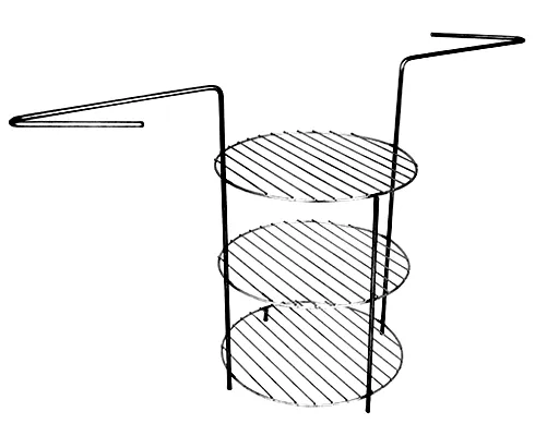 Поверх устанавливаются решетка, на которой разложены продукты. При готовке соки и жиры могут стекать в щепу, а получаемый в результате дым – впитываться в еду, поэтому применяется специальный поддон.