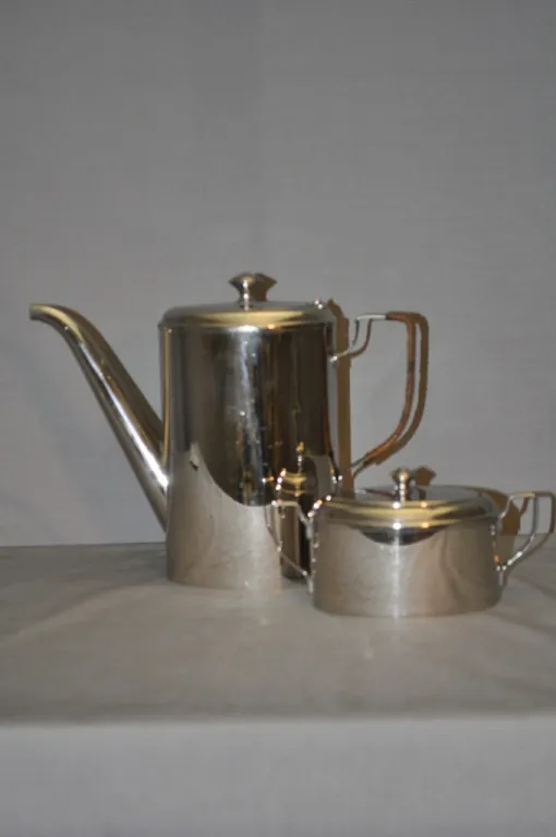 Цена на товар может измениться после поступления товара. Точную цену уточняйте у нашего менеджера. Телефон: 8 (812) 336-25-25Чайник и сахарница, Европа, нач ХХв, восстановлен, никель