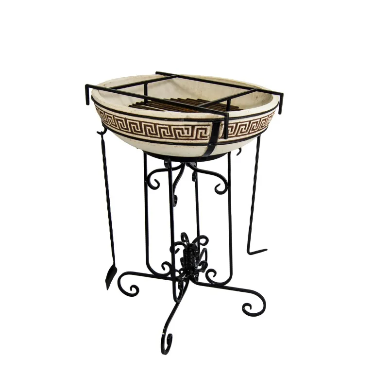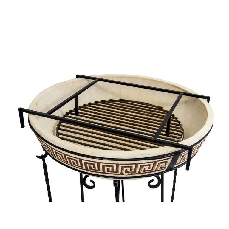 Цена на товар может измениться после поступления товара. Точную цену уточняйте у нашего менеджера. Телефон: 8 (812) 336-25-25Керамическое изделие Барбекю «Меандр» отличается от обычного металлического мангала тем, что приготовление шашлыка происходит не только от жара углей, но и за счет мощной теплоотдачи керамических дна и стен чаши барбекю.