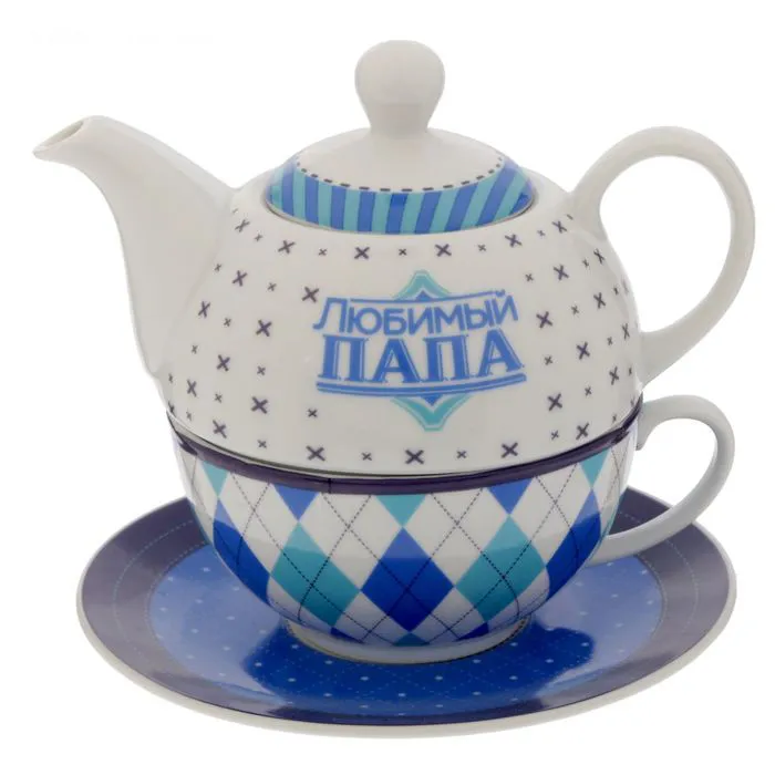 Чайный набор Любимый папа, 3 предмета: заварочный чайник кружка, блюдце