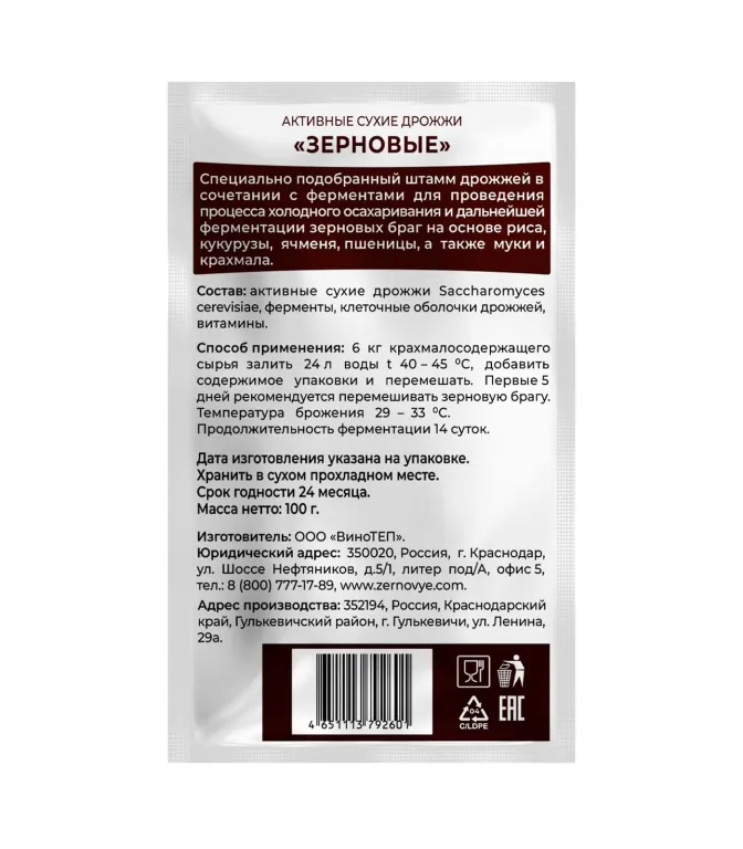 Цена на товар может измениться после поступления товара. Точную цену уточняйте у нашего менеджера. Телефон: 8 (812) 336-25-25Специально подобранный штамм дрожжей в сочетании с ферментами для проведения процесса холодного осахаривания и дальнейшей ферментации зерновых браг на основе риса, кукурузы, ячменя, пшеницы, а также муки и крахмала.