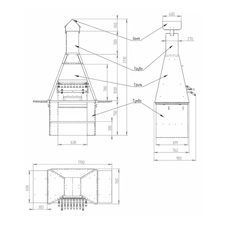 Цена на товар может измениться после поступления товара. Точную цену уточняйте у нашего менеджера. Телефон: 8 (812) 336-25-25Стационарный гриль для традиционного приготовления на углях. Прочная конструкция гриля полностью выполнена из нержавеющей стали и идеально подходит для эксплуатации на открытых площадках. Опциональные трубы позволяют использовать гриль внутри беседок и террас. Приток воздуха необходимый для процесса горения в очаге регулируется выдвижением зольного ящика. Верхняя часть конструкции гриля может быть установлена на несгораемую поверхность (каменный подиум, керамическая столешница) и эксплуатироваться без использования тумбы.