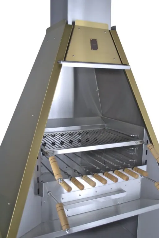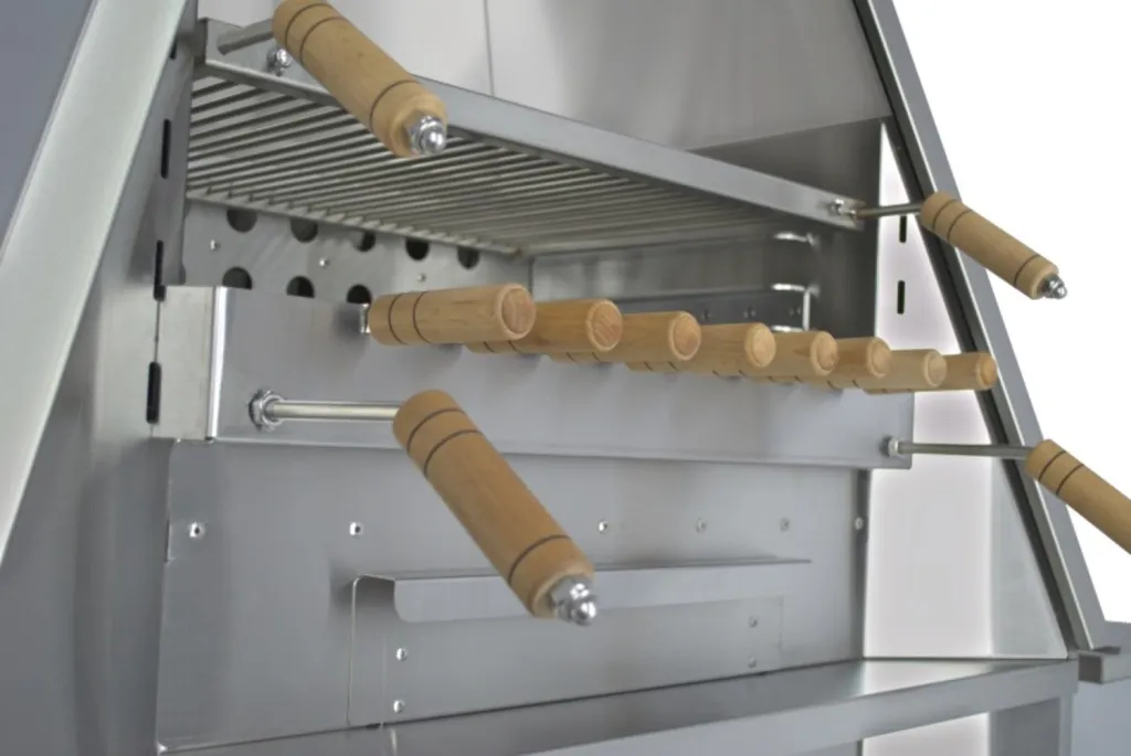 - Регулируемый по высоте шашлычный модуль (8 шампуров с вращающимися деревянными ручками)
