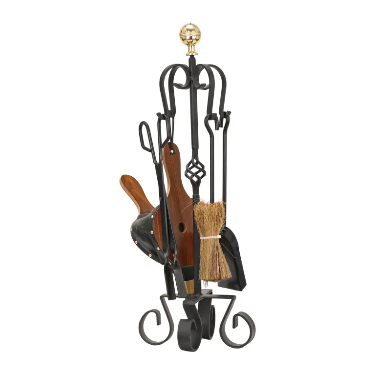 Цена на товар может измениться после поступления товара. Точную цену уточняйте у нашего менеджера. Телефон: 8 (812) 336-25-25Данный каминный набор включает в себя несколько инструментов: меха для раздувания огня, щипцы для поленьев, совок и метёлку для сажи.