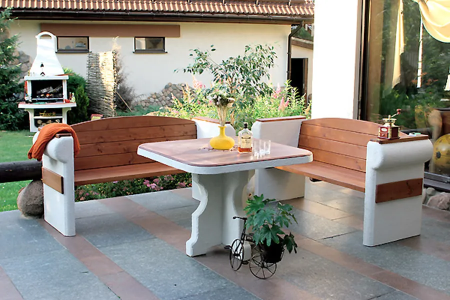 Цена на товар может измениться после поступления товара. Точную цену уточняйте у нашего менеджера. Телефон: 8 (812) 336-25-25Комплект садовой мебели: стол и две скамейки.