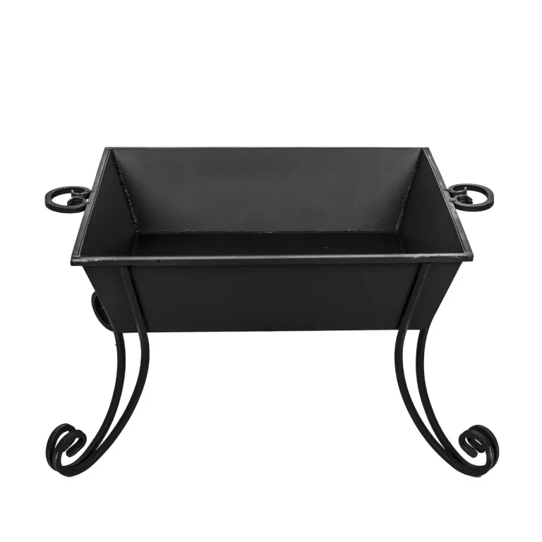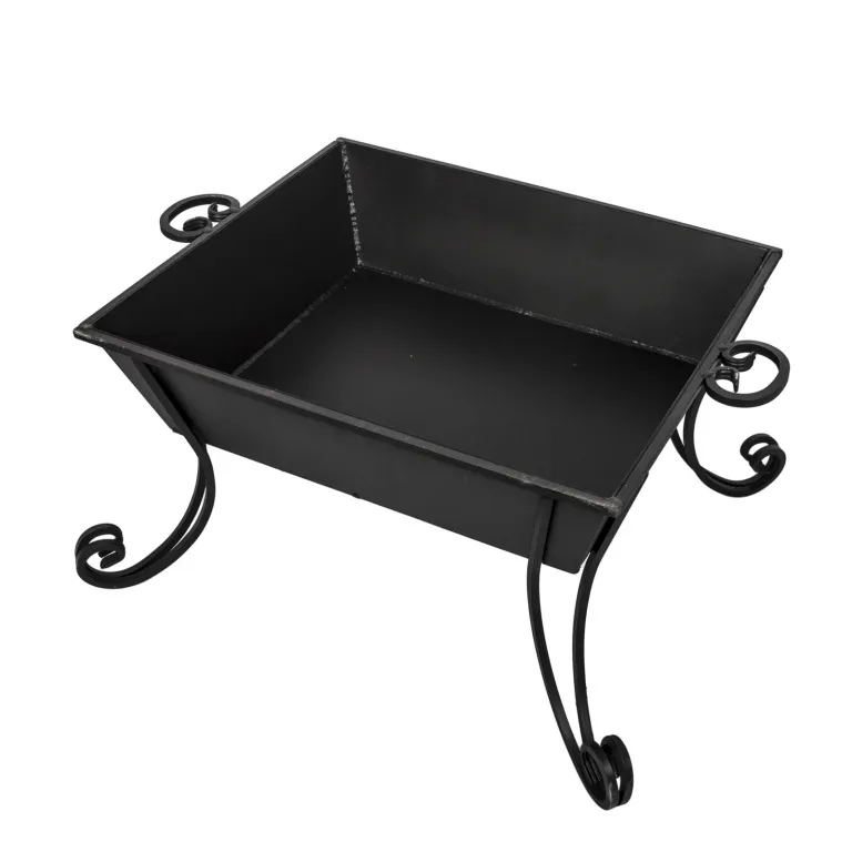 Устройство изготовлено из конструкционной стали толщиной 3 миллиметра. Такая сталь хорошо выдерживает высокие температуры и значительную весовую нагрузку. Высота костровой чаши делает контроль за горящим огнём более удобным, облегчает подкладывание дров, ворошение углей и уход за самим устройством. Скошенные боковые стенки костровой чаши облегчают уборку не прогоревших дров, углей и золы. Для усиления конструкции по её верхнему краю приварен квадратный металлический пруток сечением 10 миллиметров, предотвращающий деформацию стенок чаши и нарушение геометрических пропорций. Из такого же прутка сделаны изящные кованые ножки костровой чаши, вносящие в дизайн конструкции элементы изыска.