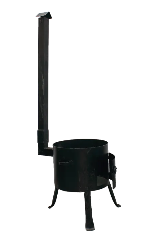 Может быть разной конструкция топочной части. Доступные варианта – без трубы, с трубой, мангал с печкой. Печь под казан купить можно с учетом особенностей применения.
