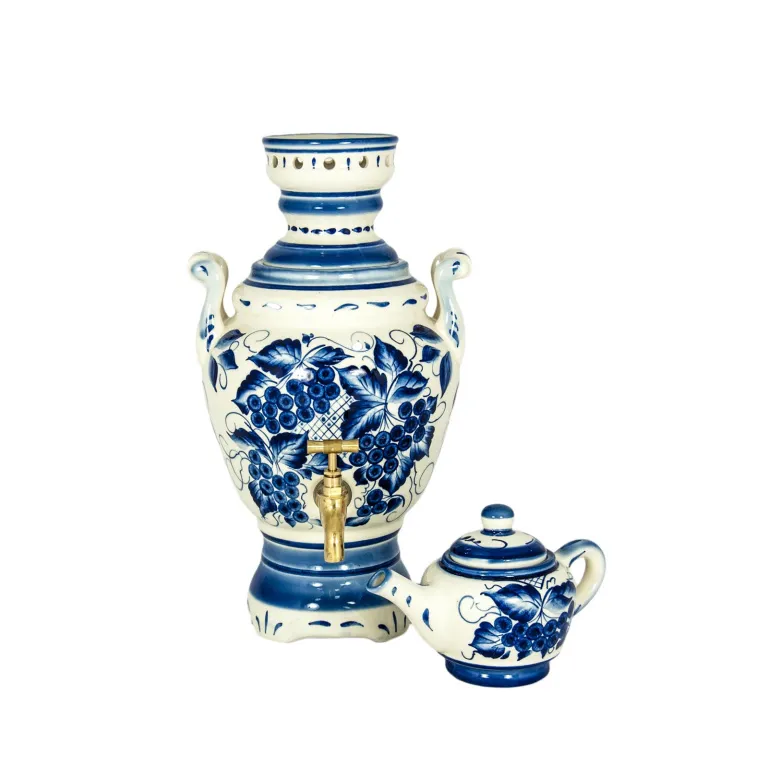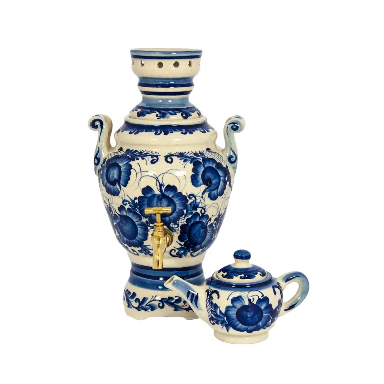 Самовар электрический Гжель, 4 л, с заварочным чайником 0,5 л, керамический