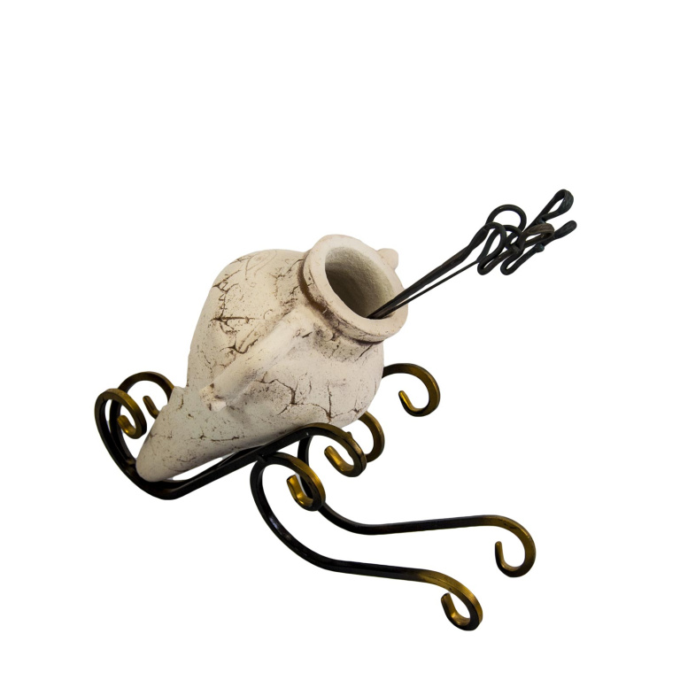 Цена на товар может измениться после поступления товара. Точную цену уточняйте у нашего менеджера. Телефон: 8 (812) 336-25-25У большинства из нас шампура обычно не имеют своего специального места хранения и беспорядочно лежат где-нибудь в гараже или на кухне, пылятся на шкафу. Шампурница горизонтальная используется преимущественно для эстетичного хранения шампуров. Керамическая амфора в ковке станет украшением зоны барбекю и дополнением к Вашему тандыру или мангалу.