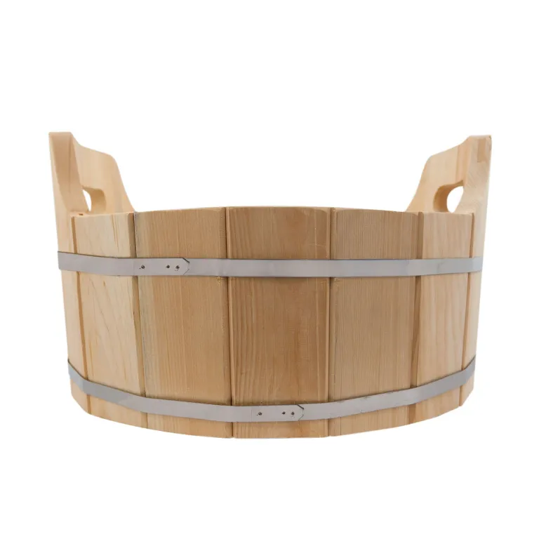 Чаще всего в роли древесины предстают лиственница, сосна, дуб, береза. Собирается конструкция из отдельных элементов, которые стягиваются обручами. Снаружи устанавливают поручни и лестницу. Сегодня несложно купить купель для бани в уже готовом виде. Они походят на небольшую бочку, могут быть разного размера и формы: круглой, овальной, даже треугольной. Изделие отличается экологичностью благодаря применяемому материалу, поэтому им могут пользоваться даже астматики и аллергики.