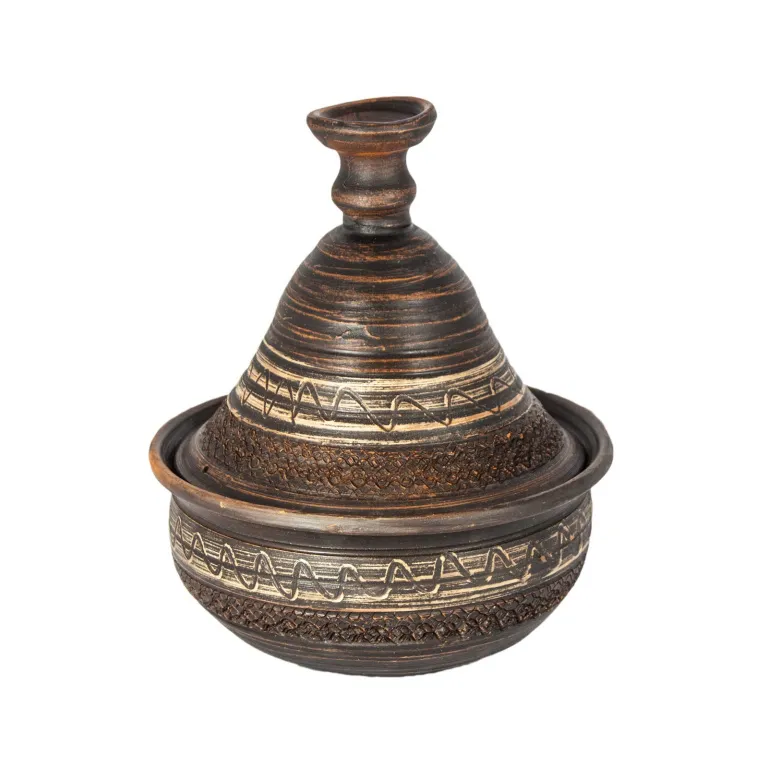 Марокканская посуда тажин также используется для приготовления блюд из мяса, овощей, рыбы и блюд из других ингредиентов. Тажин состоит из чаши и конусовидного колпака, который устанавливается на чашу. Силуэт тажина напоминает тандыры, знаменитые восточные печи. В процессе приготовления влага из продуктов испаряется и конденсируется на стенках крышки, после чего стекает вниз. Таким образом сохраняется сок продуктов и аромат специй, поэтому блюда получаются сочными, нежными и невероятно ароматными.