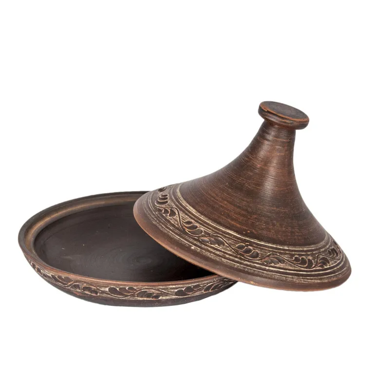 Марокканская посуда тажин также используется для приготовления блюд из мяса, овощей, рыбы и блюд из других ингредиентов. Тажин состоит из чаши и конусовидного колпака, который устанавливается на чашу. Силуэт тажина напоминает тандыры, знаменитые восточные печи. В процессе приготовления влага из продуктов испаряется и конденсируется на стенках крышки, после чего стекает вниз. Таким образом сохраняется сок продуктов и аромат специй, поэтому блюда получаются сочными, нежными и невероятно ароматными.