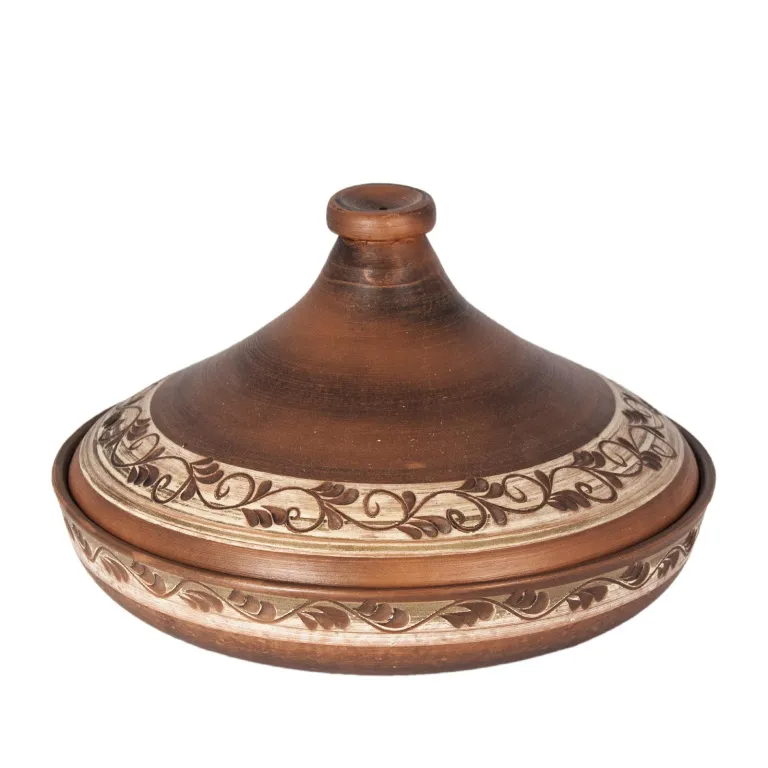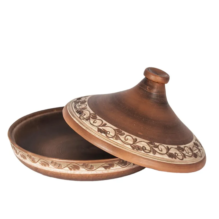 Марокканская посуда тажин также используется для приготовления блюд из мяса, овощей, рыбы и блюд из других ингредиентов. Тажин состоит из чаши и конусовидного колпака, который устанавливается на чашу. Силуэт тажина напоминает тандыры, знаменитые восточные печи. В процессе приготовления влага из продуктов испаряется и конденсируется на стенках крышки, после чего стекает вниз. Таким образом сохраняется сок продуктов и аромат специй, поэтому блюда получаются сочными, нежными и невероятно ароматными.