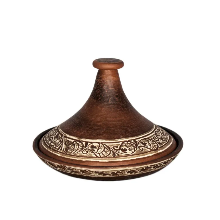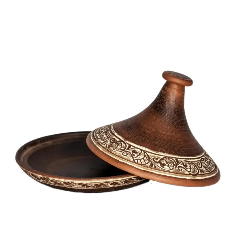 Марокканская посуда тажин также используется для приготовления блюд из мяса, овощей, рыбы и блюд из других ингредиентов. Тажин состоит из чаши и конусовидного колпака, который устанавливается на чашу. Силуэт тажина напоминает тандыры, знаменитые восточные печи. В процессе приготовления влага из продуктов испаряется и конденсируется на стенках крышки, после чего стекает вниз. Таким образом сохраняется сок продуктов и аромат специй, поэтому блюда получаются сочными, нежными и невероятно ароматными.