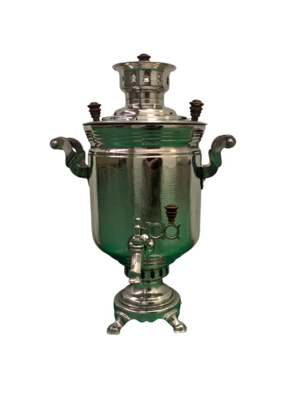 Цена на товар может измениться после поступления товара. Точную цену уточняйте у нашего менеджера. Телефон: 8 (812) 336-25-25Самовар Банка, волна, 5 литров, завод Штамп Тула, восстановлен, 70-е годы ХХ века, никель, белый, труба 65 мм