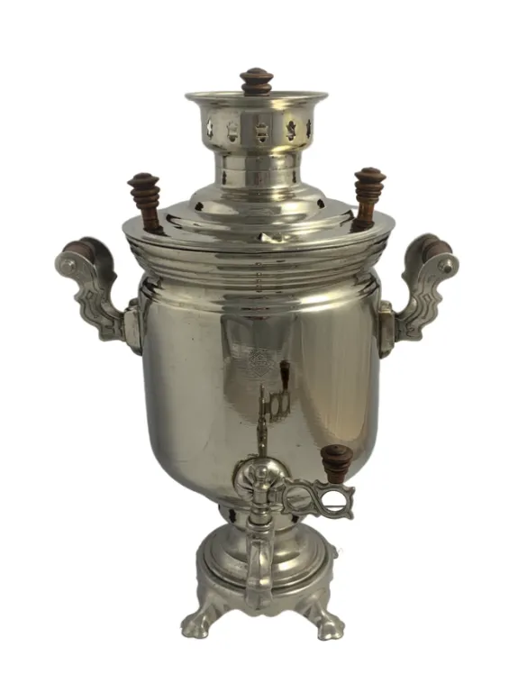 Цена на товар может измениться после поступления товара. Точную цену уточняйте у нашего менеджера. Телефон: 8 (812) 336-25-25Самовар Банка, гладкая, 5 литров, 70-е годы ХХ века, завод Штамп Тула, восстановлен, никель, белый, труба 65 мм в комплекте