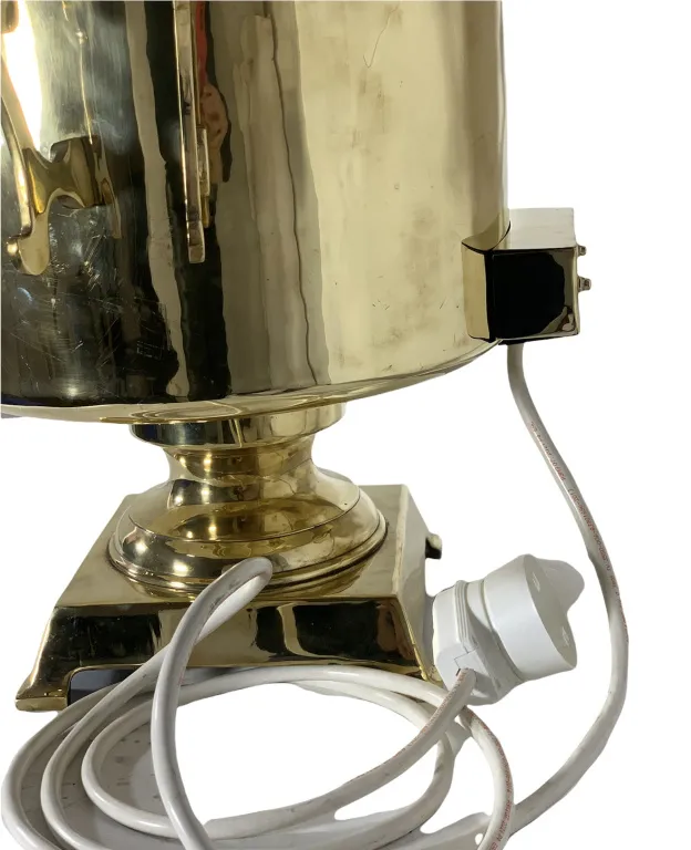 Цена на товар может измениться после поступления товара. Точную цену уточняйте у нашего менеджера. Телефон: 8 (812) 336-25-25Самовар Буфетный, электрический, завод Штамп Тула, конец 80х ХХ века, восстановлен, 45 литров, латунь, желтый