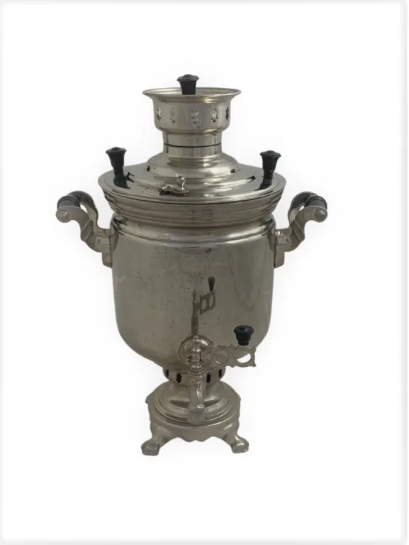 Цена на товар может измениться после поступления товара. Точную цену уточняйте у нашего менеджера. Телефон: 8 (812) 336-25-25Самовар Банка, гладкая, 5 литров. завод Штамп Тула, восстановлен, 70-е годы ХХ века, никель, белый, труба 65 мм