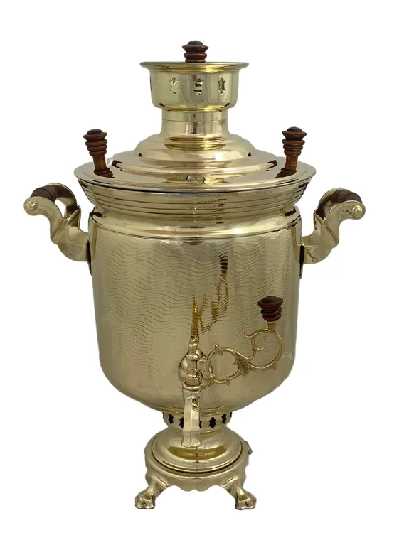 Цена на товар может измениться после поступления товара. Точную цену уточняйте у нашего менеджера. Телефон: 8 (812) 336-25-25Самовар Банка, волна, 7 литров. завод Штамп Тула, восстановлен, 1977 год, латунь, желтый, труба 65 мм