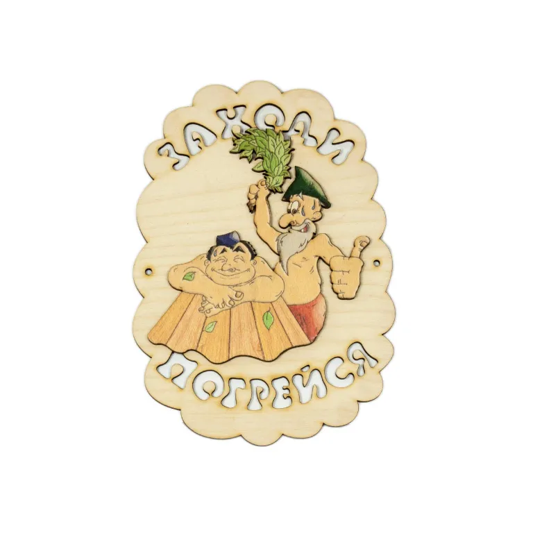 Табличка для бани Заходи погрейся (дед парит, 18х13 см)