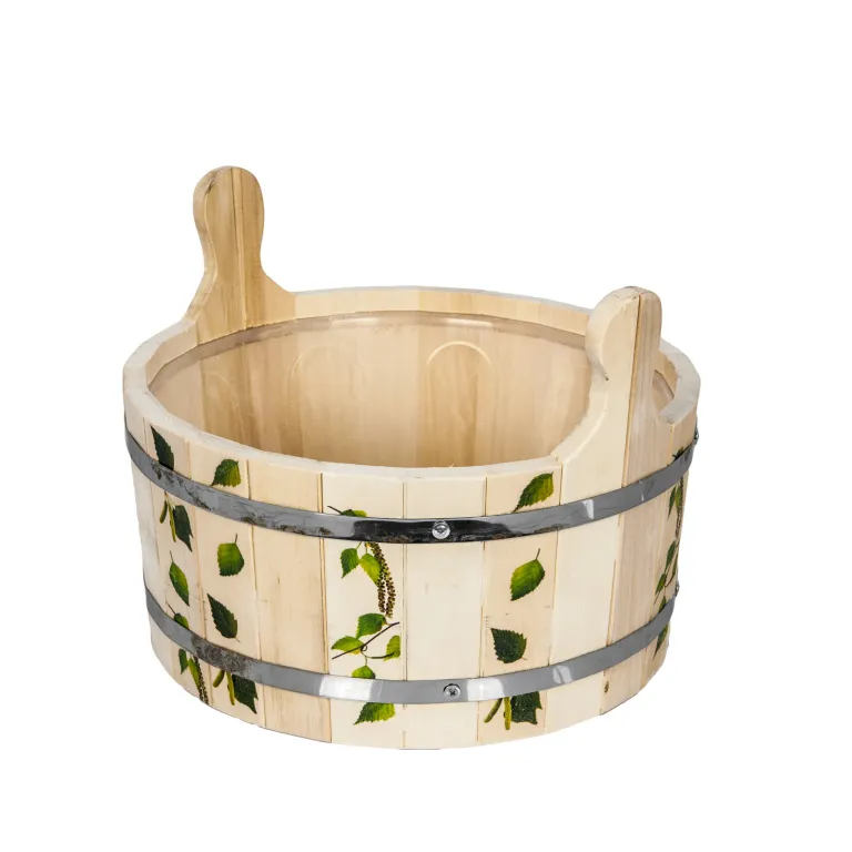Шайка двуручная 10 л, с пластиковой вставкой, с рисунком, липа