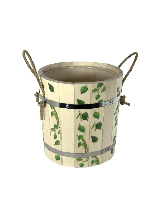 Запарник 9 л, пластиковая вставка, липа, с рисунком