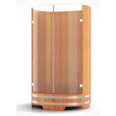 Изготовлена из лиственницы. Поверхность душевой кабины обработана специальным, особым защитным покрытием из полиуретана придающий поверхности кабины водостойкость и износостойкость. На ощупь – поверхность имеет приятную гладкую текстуру. Такая защита является абсолютно экологически безопасной что подтверждено государственным гигиеническим сертификатом.