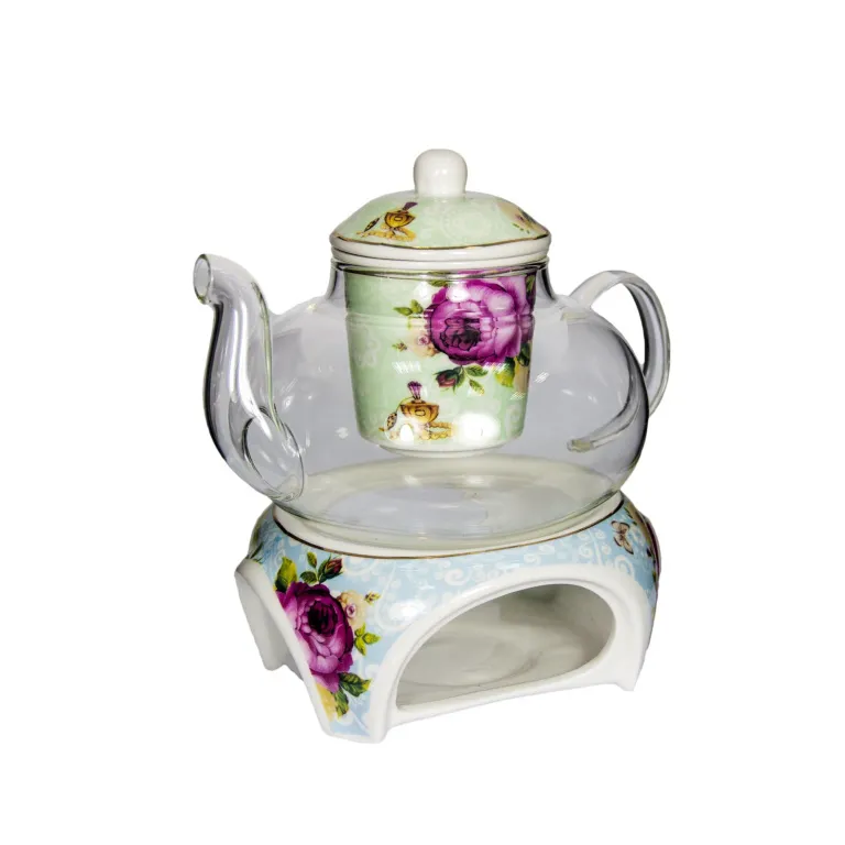 Чайник заварочный 0,8 л, стеклянный с керамическим ситом и подставкой для подогрева, Весна