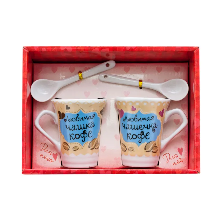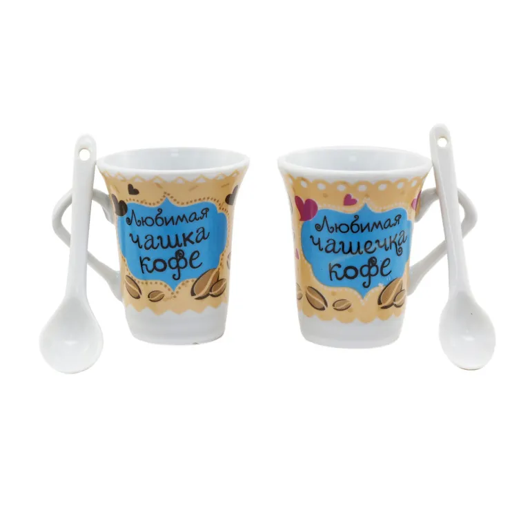 Чайная пара Любимая чашка кофе, 2 кружки по 70 мл, 2 ложки, керамика
