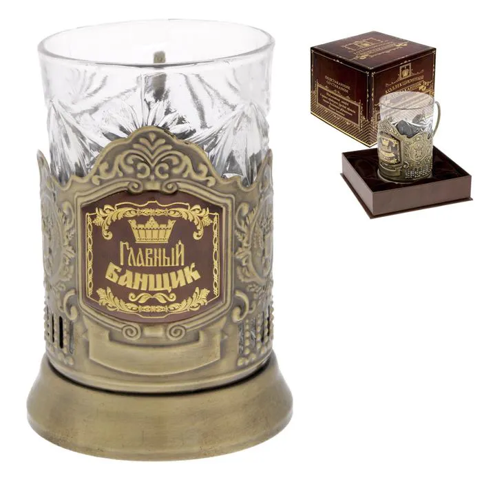 Подстаканник со стаканом "Лучший рыбак" латунь