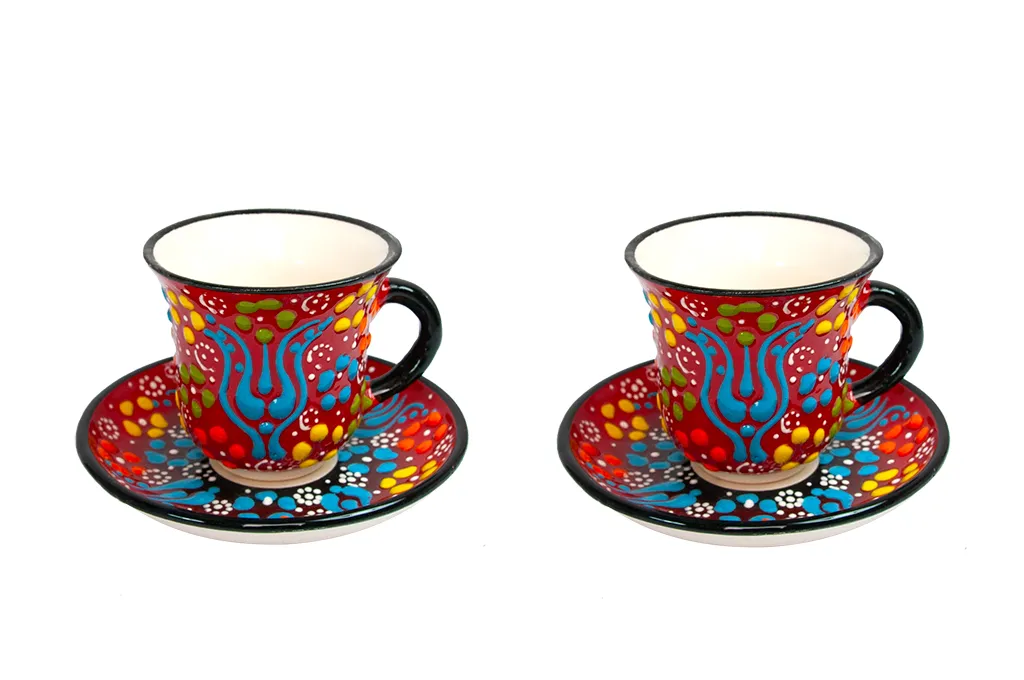 Турецкий стакан Рельеф кофе, керамика, красный, (набор 4 предмета)