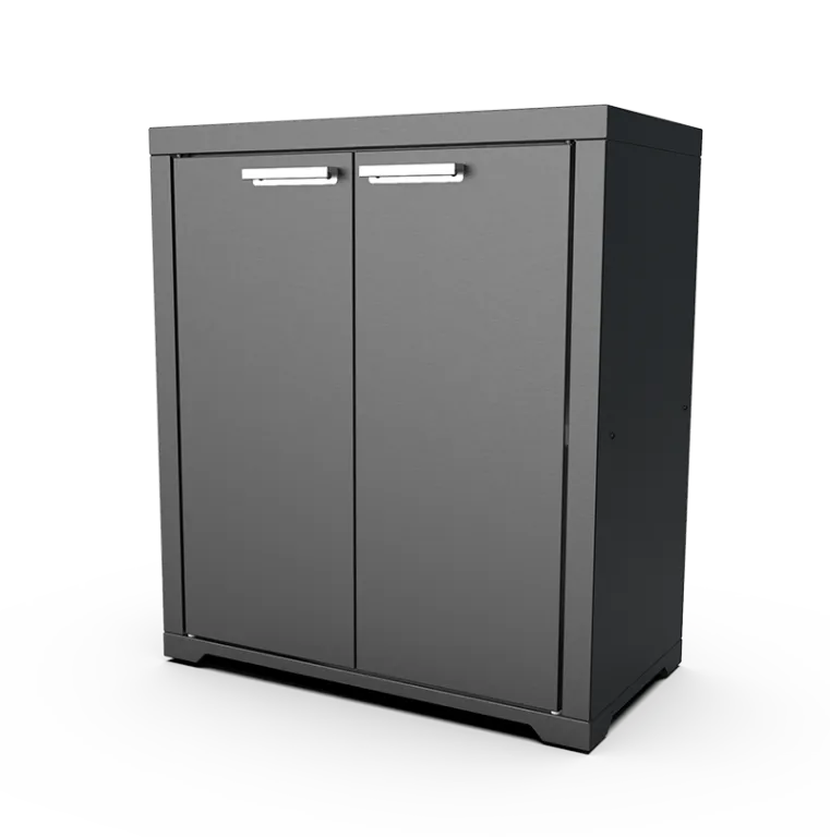 Тумба Master Expert – это удобное устройство для хранения кулинарных принадлежностей. Она имеет 2 полки и дверцы на магнитах, поэтому посуда и продукты будут защищены от пыли и осадков. Тумба легко очищается, поскольку ее поверхность покрыта полимерной краской. Создайте индивидуальную садовую кухню, дополнив тумбу грилем и модульным столом, продаются отдельно.