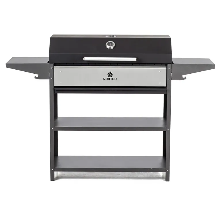 Вместительный гриль-мангал с крышкой барбекю. Топка с декоративной накладкой из нержавеющей стали и выдвижным зольником для регулировки интенсивности жара. Выдерживает дровяную растопку.