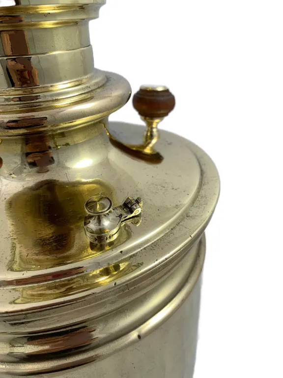 Самовар Банка медальная с висячими ручками, 3.5 литра, наследники Василия Степановича Баташева Тула, конец 19 начало 20 века, восстановлен, латунь, желтый, труба 64 мм в комплекте