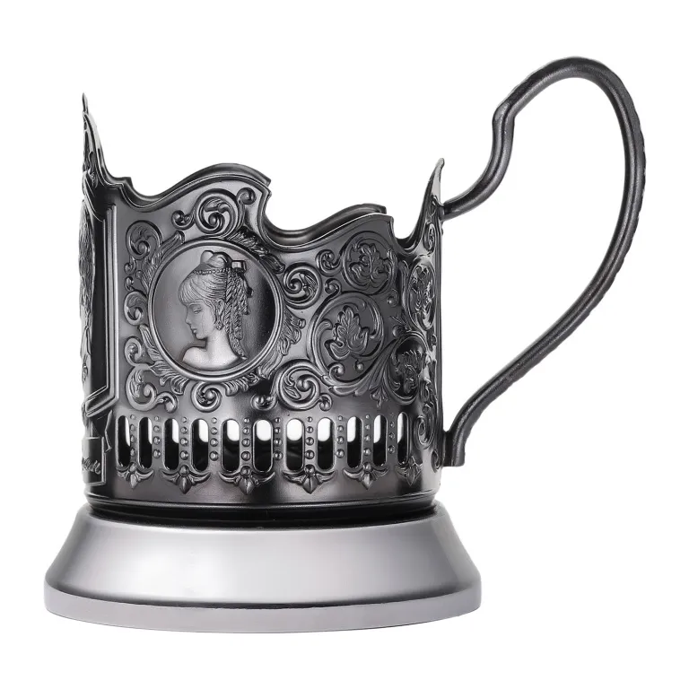Подстаканник Пушкин, никель с чернью